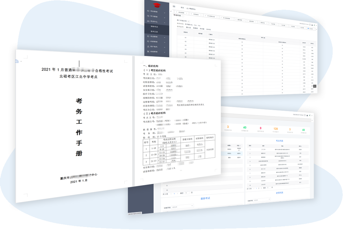 為解決考試中心考場安排和管理難題而推出的考試安排管理系統(tǒng)。幫助考試中心解決監(jiān)考老師無考前培訓(xùn)記錄、無合規(guī)性考試記錄、手動編排考場安排難、考后數(shù)據(jù)統(tǒng)計(jì)困難的問題。從監(jiān)考老師在線學(xué)習(xí)培訓(xùn)、合規(guī)性考試、考場安排、秩序冊生成到監(jiān)考記錄導(dǎo)出的全流程功能覆蓋,一站式解決大部分問題。